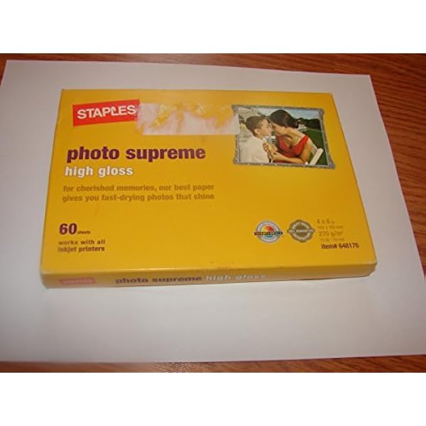 Review staples high gloss photo supreme 44 sheets 8.5 11 718103138611. Professional digital photo paper, high glossy photo paper. Lot of 8 staples photo plus gloss paper inkjet compatible 60 sheets 4x6. Cornersfor laser and ink jet printerscompatible with templates 5664, 5164,8664laser/inkjet label paper50# paper and liner provides quality printingperfect for shipping labels with stamps.comgreat for craft projects, wine. Package completely sealed of containing 50 sheets of photo supreme 81/2 x 11.