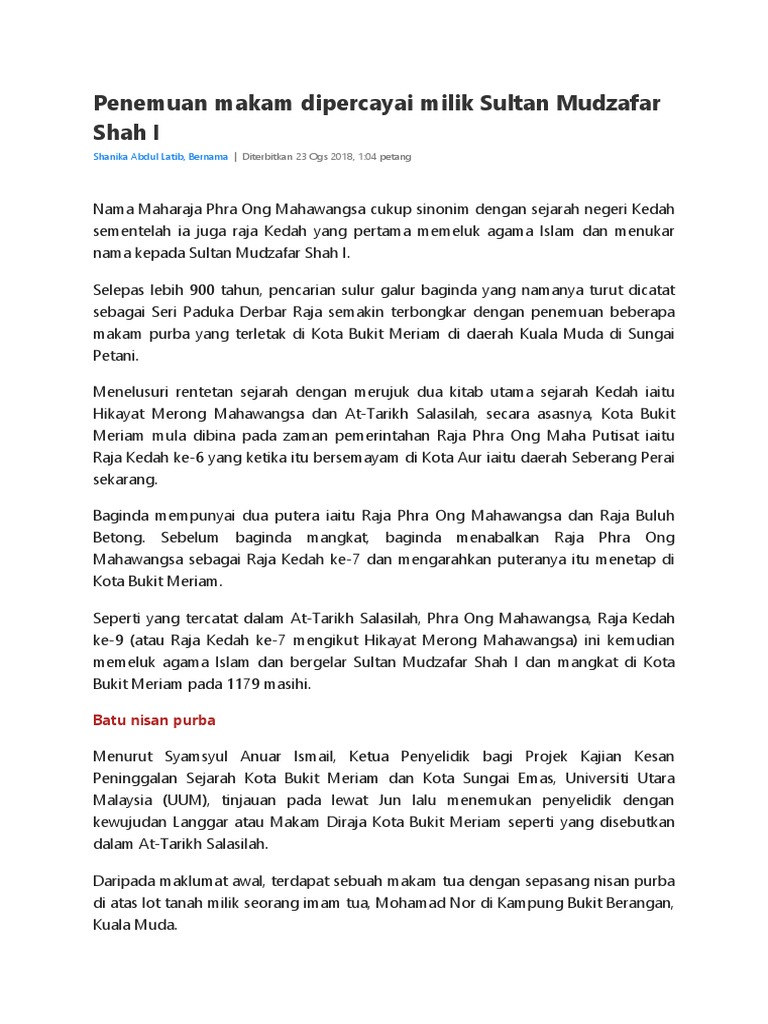 See full list on ms.wikipedia.org See full list on ms.wikipedia.org Sebelum ini jajahan taklukan negeri kedah tersebar luas sehingga ke pattani.pulau pinang dan perlis juga merupakan berada bawah taklukan kesultanan kedah. Sultan islam brunei yang pertama (sebelumnya terkenal dengan nama awang alak betatar). See full list on ms.wikipedia.org